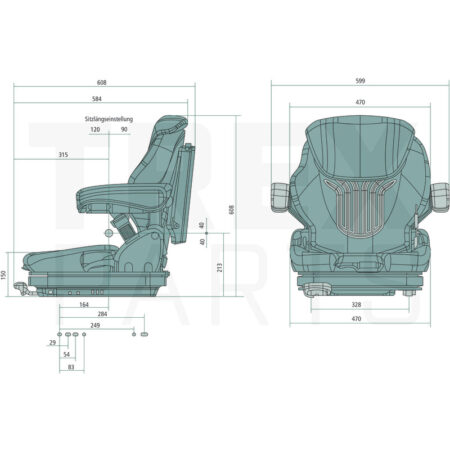Tekniset tiedot:• ilmajousitettu kompakti-istuin, 12 V kompressorilla ja matalataajuusjousituksella